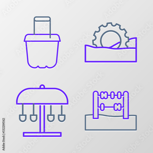 Set line Abacus, Attraction carousel, Ferris wheel and Sand in bucket icon. Vector