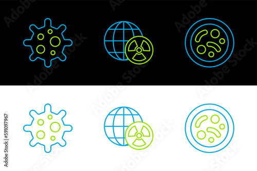 Set line Bacteria, Virus and Planet earth and radiation icon. Vector