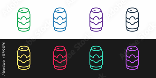 Set line Beer can icon isolated on black and white background. Vector