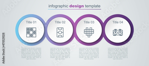Set line Board game of checkers, Hockey table, Pixel hearts for and Time chess clock. Business infographic template. Vector
