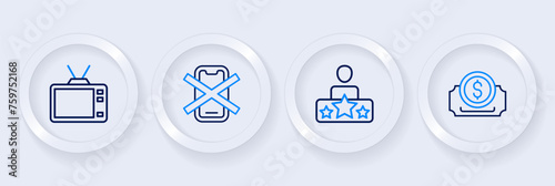 Set line Cinema ticket, Actor star, No cell phone and Retro tv icon. Vector