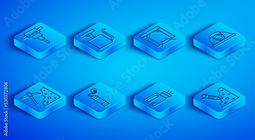 construction, hammer, tool, equipment, power, vector, dynamite, explosive, danger, illustration, icon, isolated, set, line, linear, contour, outline, isometric, three-dimensional, blue, symbol, entrance, tunnel, stone, rock, cave, industry, time, clock, detonate, weapon, timer, explosion, fish, electric, light, lamp, energy, bulb, miner, safety, industrial, professional, job, pecking, axe