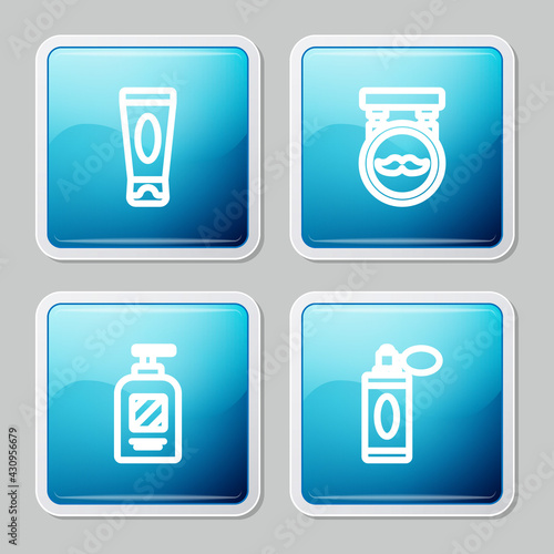cosmetic, care, beauty, skin, lotion, tube, jar, container, body, gel, vector, icon, isolated, set, colours, colourful, blue, white, buttons, line, linear, contour, outline, art, hygiene, barber, shop, hair, salon, signboard, design, signs, barbershop, haircut, label, razor, shampoo, bottle, cardboard box, plastic, clean, health, illustration, package, product, blank, hairbrush, atomizer, cologne