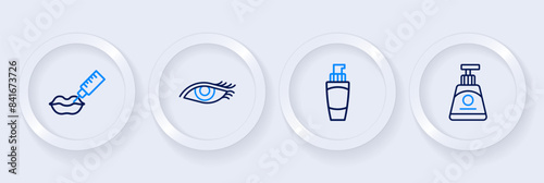 Set line Cream or lotion cosmetic tube, Tube of hand cream, Woman eye and Lip augmentation icon. Vector