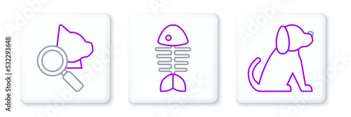 Set line Dog, Veterinary clinic symbol and Fish skeleton icon. Vector
