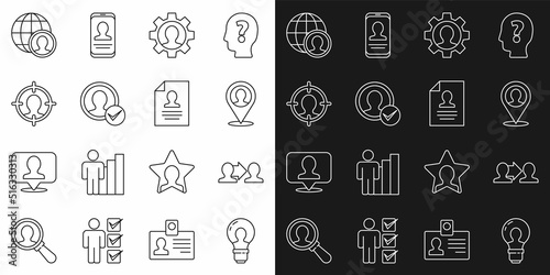 idea, head, light, project, management, global positioning system, pin, map, human, vector, icon, isolated, set, line, linear, contour, outline, black, white, brain, process, business, user, status, hunting, concept, people, global, globe, cv, application, document, job, laptop, smartphone, career, recruitment, work, navigation, pointer, point, businessman, productive, productivity, number, avatar, glasses