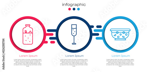 Set line Mulled wine, Glass of champagne and Mixed punch in bowl. Business infographic template. Vector