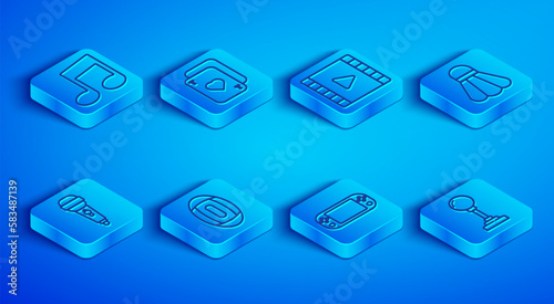 note, sound, tone, vector, icon, symbol, game, card, casino, playing, isolated, set, line, linear, contour, outline, isometric, three-dimensional, blue, ace, illustration, film, disrobed, motion picture, video, tape, cinema, football, ball, rugby, sport, competition, console, technology, portable, play, entertainment, shuttlecock, badminton, design, feather, equipment, leisure, audio, voice, air