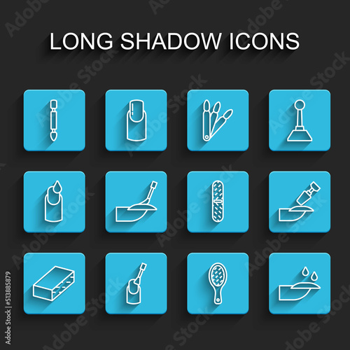 file, care, manicure, pedicure, nail, polish, bottle, fashion, cuticle, pusher, vector, icon, isolated, set, line, linear, contour, outline, long, shadow, blue, white, beauty, tool, salon, spa, equipment, female, woman, hand, design, illustration, art, drill, electric, machine, procedure, fingernail, hygiene, finger, signs, beautiful, style, glamour, background, cutter, manicurist
