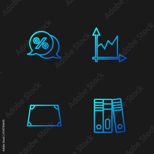 Set line Office folders, Acute trapezoid shape, Discount percent tag and Graph, schedule, chart, diagram. Gradient color icons. Vector