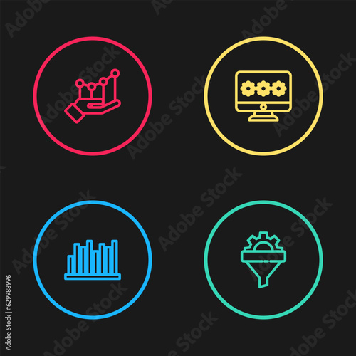 Set line Pie chart infographic, Sales funnel with gear, Monitor password and icon. Vector
