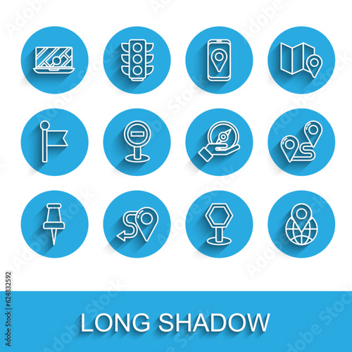 push, thumbtack, vector, icon, location, pin, point, map, laptop, mobile, isolated, set, line, linear, contour, outline, long, shadow, blue, white, global positioning system, navigation, road, traffic, street, signpost, globe, planet, earth, global, stop, signs, symbol, closed, pointer, marker, path, travel, north, east, south, wind, illustration, mark, element, direction, web