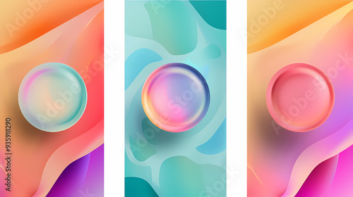 SET Modern poster design with gradient round sphere in the center. Colorful banner design with 3d gradient background