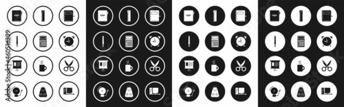 notepad, book, paper, blank, vector, icon, illustration, buttons, ink, line, isolated, set, black, white, linear, contour, diary, spiral, note, alarm, time, timer, minute, measurement, length, centimetre, scissors, cut, tailor, tool, presentation, business, finance, graph, cup, cafes, drink, tea, bag, school, education, student, ringing, ring, notification, message