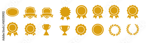 set of Flat-Style Winner Badge Vectors in Solid Gold Tones, Elegant and Minimalist Award Emblems for Recognition, Editable Formats: AI, EPS, JPG, PNG, Ideal for Both Digital and Print Use