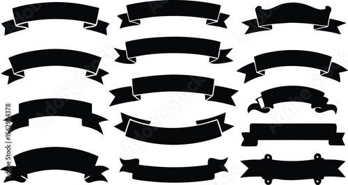 banner, ribbon, badge, graphic, ribbon, silhouette, design element, bold, border, colourful, curve, label, media, ornament, ornate, swirl, tags, tape, title, wave, accent, attention, enclosed, simple, streamer, flag, award, black-and-white, contour, creativity, discount, insignia, medal