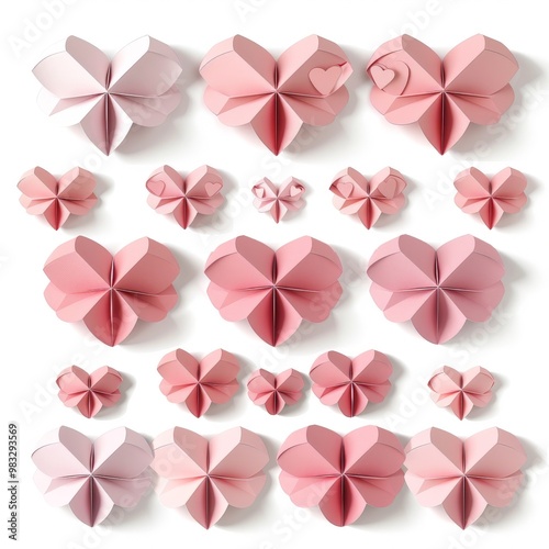 set of 16 love shape graphic well arranged 4 x 4, pink colour, cute, aesthetic, 2D, white colour background