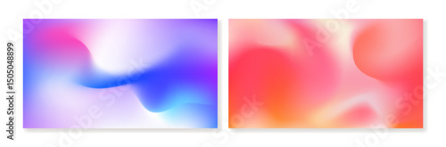 Set of 2 horizontal gradient backgrounds with abstract waves in blue, purple, red and yellow colors. For brochures, booklets, banners, business cards, social media and other projects. For web and pri