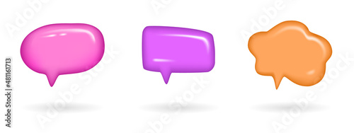 Set of 3d speech bubbles. Speech bubbles in the form of a chat window, a streamlined message ball, a message window with a bubble frame. The concept of social media messages. Vector illustration