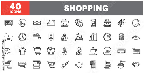 Set of 40 line icons shopping. Outline icon collection. Editable stroke. Vector illustration.