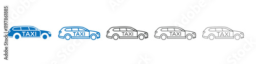 Set of 5 Taxi icons with 1 silhouette and 1 unexpanded vector inside, Taxi icon perfect for transportation apps maps or travel related designs