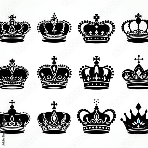 crown, pattern, vector, design, isolated, illustration, white, black, luxury, silhouette, jewellery, set, decoration, heraldic, element, traditional, king, authority, emperor, queen, coronation, aristocracy, royals, insignia, imperial, elegance, symbol, classic, detailed, image, majestic, nobility, object, ornate, style