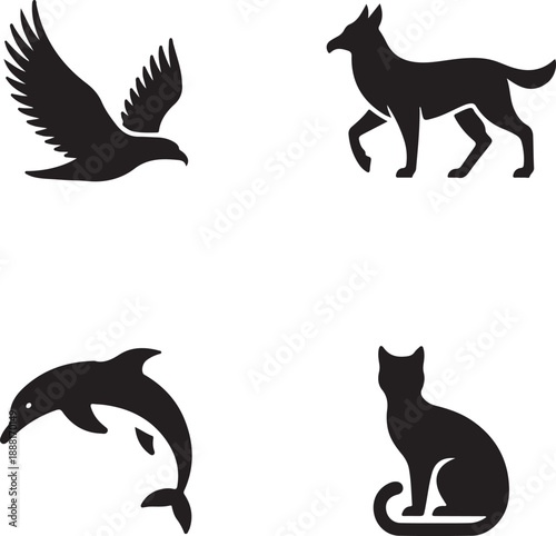 Set of Animals Vector Icon Silhouette – Wildlife, Pet, Farm and Zoo Animal Black Icons Collection