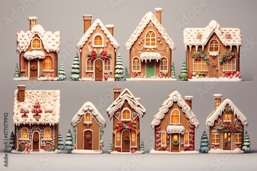 Set of bakery houses. Christmas gingerbread. Cookies in the form of houses
