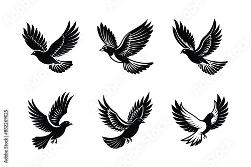 set of bird flying Black Silhouette Bundle - Stunning Vector Illustrations for Wild or domestic animals Nature Lovers, isolated on white