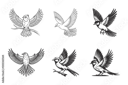 Set of bird outlines vector art graphic design