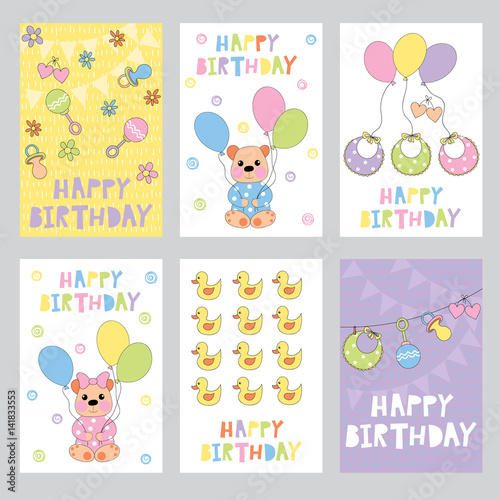 birthday, background, greeting, card, abstract, anniversary, baby, bear, balloon, baby animal, toy, girl, boy, cartoon, newborn, adorable, duck, pacifier, shower, happy, cute, beautiful, celebration, collection, decoration, design, event, festive, fun, funny, holiday, children, illustration, invitation, invite, joy, children, party, poster, set, symbol, template, vector