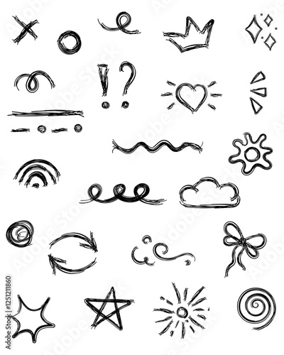 Set of Black Grunge Scribble Elements, Hand Drawn Doodles, Icon, Scribble Drawn with Pen, Sketch