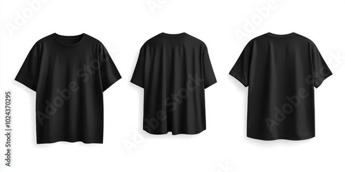 Set of black oversized loose Drop Shoulder tee t shirt round neck front, back and side view