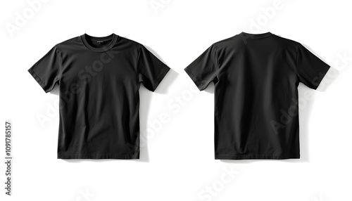 Set of blank men's t-shirts with shadows, front and back view. Design template on a white background isolated with white highlights, png