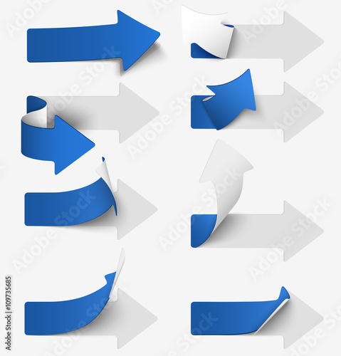 Set of blue paper arrow stickers