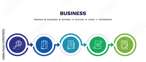 set of business thin line icons. business outline icons with infographic template. linear icons such as money finder, tactic, newspaper page, paper graphic, vector.
