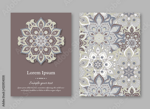 Set of cards, flyers, brochures, templates with hand drawn mandala pattern. Vintage oriental style. Indian, asian, arabic, islamic, ottoman motif. Vector illustration.
