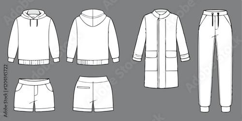 jacket, t-shirt, sweater, shirt, fashion, clothing, vector, clothes, t-shirt, illustration, design, jacket, template, sleeve, textile, sweater, man, wear, casual attire, dress, set, style, collar, garment, pant, apparel, sport, sweatshirt