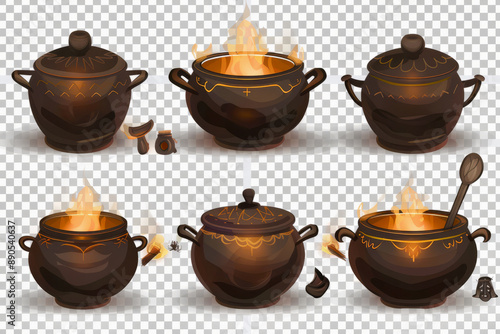Set of cauldron illustrations with transparent background, perfect for Halloween-themed designs and graphic templates.