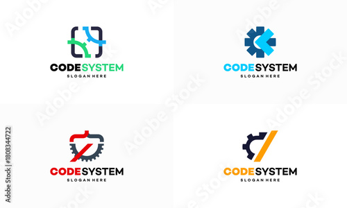 Set of Coding System logo designs concept vector, Code and Gear logo symbol