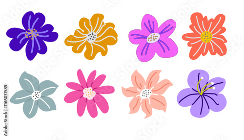 set of colorful flowers for pattern , flat organic flower element set