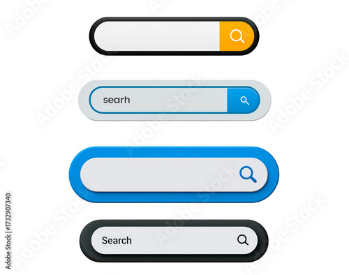 search, bar, modern, colourful, magnifying, glasses, icon, interface, web, design, input, box, cyberspace, technology, user, online, browser, digital, navigation, bar, template, concept, collection, isolated, graphic, element, symbol, blue, white, orange, black, rectangle, round, interactive, tool, minimalist, flat, style, blank, empty, iconography, buttons