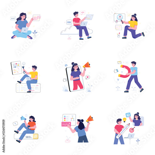 Set of Communication and Coding Flat Illustrations