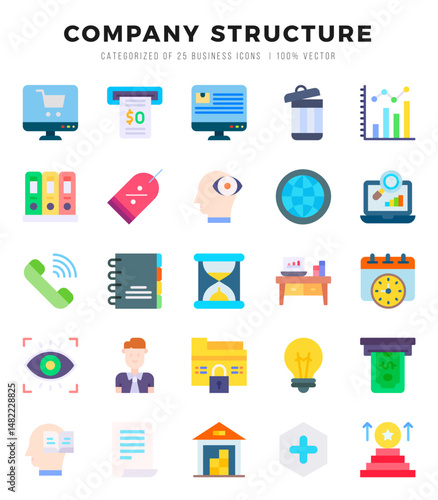 Set of Company Structure icons in Flat style. High quality Flat Icons symbol collection.
