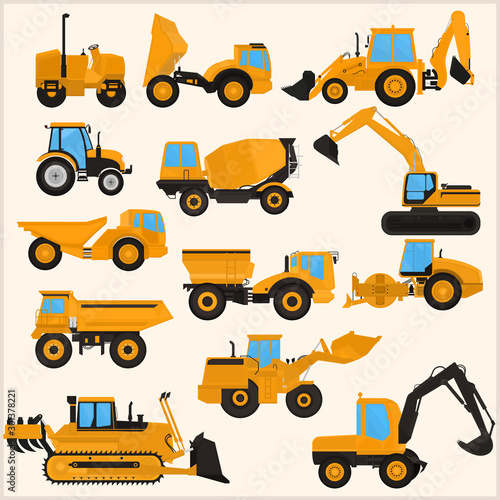 asphalt, backhoe, building, bulldozer, business, car, collection, concrete, construction, heavy equipment, construction machinery, crane, equipment, excavation, shoveling, excavator bucket, forklift, heavy, highway, icon, illustration, industrial, industry, loader, machine, machinery, mixer, pressure, road, roller, rollover, set, tractor, tractor, transport, transportation, truck, vector, vehicle, working, yellow