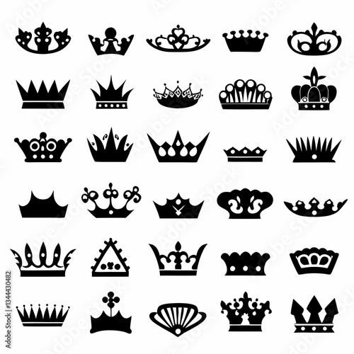 crown, vector, icon, set, symbol, vintage, king, design, royals, queen, label, heraldic, signs, illustration, silhouette, collection, luxury, banner, imperial, decoration, heraldry, insignia, retro, emblem, badge