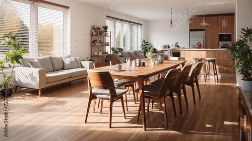dining, living, room, empty, interior, home, furniture, set, beige, colours, wooden, table, design, chair, house, dinner, floor, white, family, kitchen, style, indoor, wall, luxury, light, chair, picture, plant, pot