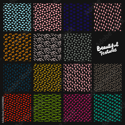 Set of different hand drawn patterns with small decorative elements