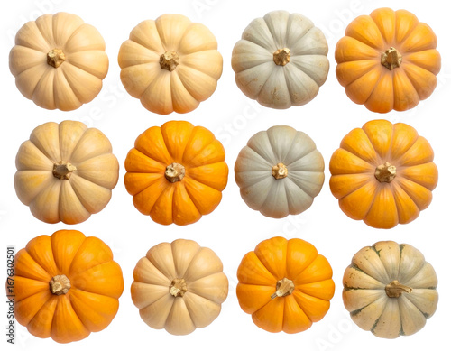Set of different pumpkins isolated on a transparent background..