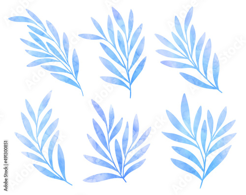 Set of digital floral elements. Hand drawn leaves isolated. Botanical illustration for decoration, print design.